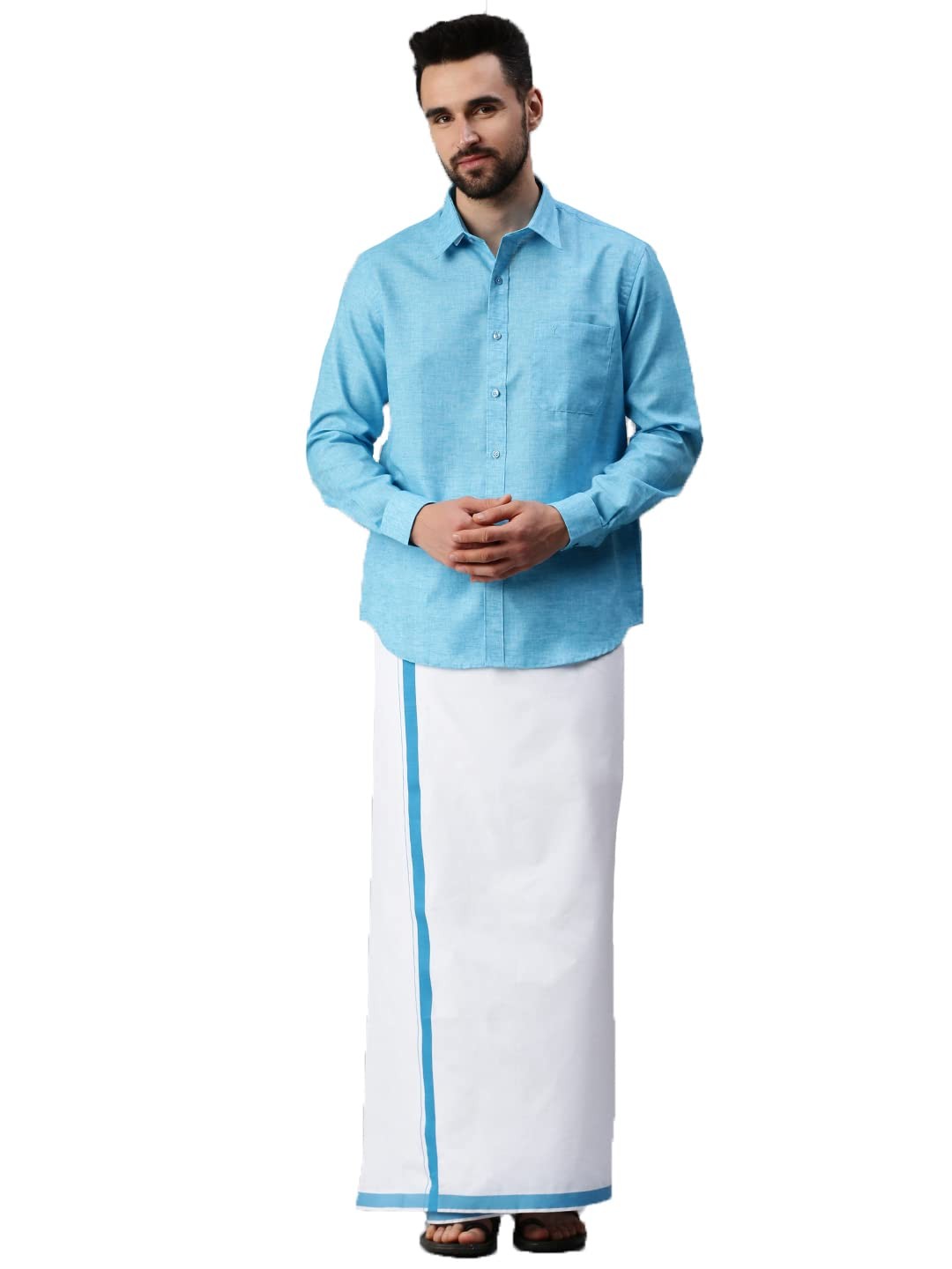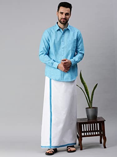 RAMRAJ COTTON Mens Cotton Plain Shirt and Dhoti Set