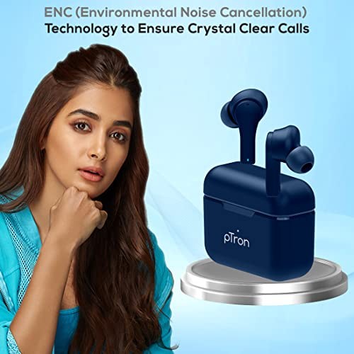 pTron Bassbuds Tango in-Ear TWS Earbuds, TruTalk AI-ENC Calls, Movie Mode, 40Hrs Playtime, Bluetooth5.1 Headphone with HD Mics, Touch Control, IPX4 Water-Resistant & Type-C Fast Charging (Royal Blue)