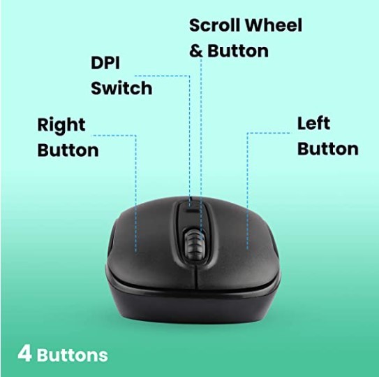 • BUTTONS: 4 Buttons: Left/Right/Scroll Click/DPI Switch